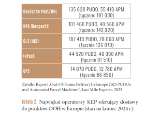Sektor KEP reprezentowany jest przez różnych przewoźników, począwszy od operatorów pocztowych, krajowe i międzynarodowe firmy kurierskie, które coraz częściej współpracują z niezależnymi operatorami sieci punktów PUDO oraz automatów paczkowych. Pojawiło się wielu nowych graczy oferujących dostęp do punktów OOH, stali się oni istotnym elementem zmiany, którą obserwujemy, czyli coraz większej liczby otwartych sieci punktów OOH. Trend ten jest kluczowy dla każdego optymalnego operacyjnie i kosztowo modelu dostaw B2C oraz C2C.