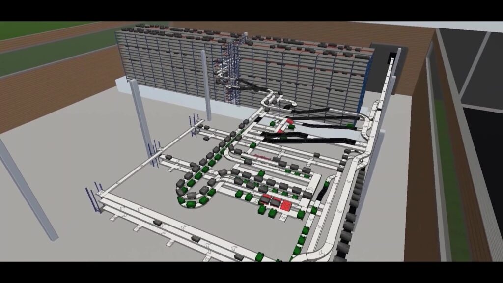 Na etapie projektowym MPL Techma wykonała modelowanie procesów logistycznych magazynu w narzędziu FlexSim, co pozwoliło zoptymalizować przepływ towarów i wstępnie przewidzieć wydajność systemu. Firma stworzyła również interfejs komunikacyjny pomiędzy systemem WMS klienta a Scadą Iconics, odpowiadającą za alokację i przepływ skrzynek w systemie magazynowym.