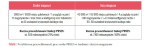 (7) Badania autora wskazują, że w średnich i dużych magazynach w trakcie profesjonalnego audytu bezpieczeństwa rozpoznaje się 200–300 elementów mających realny wpływ na bezpieczeństwo pracy. Zakres ich wpływu mieści się w zakresie od 0,16% do 0,80% dla każdego pojedynczego elementu. Obecność osoby PRSES mieści się w górnym zakresie liczbowym.